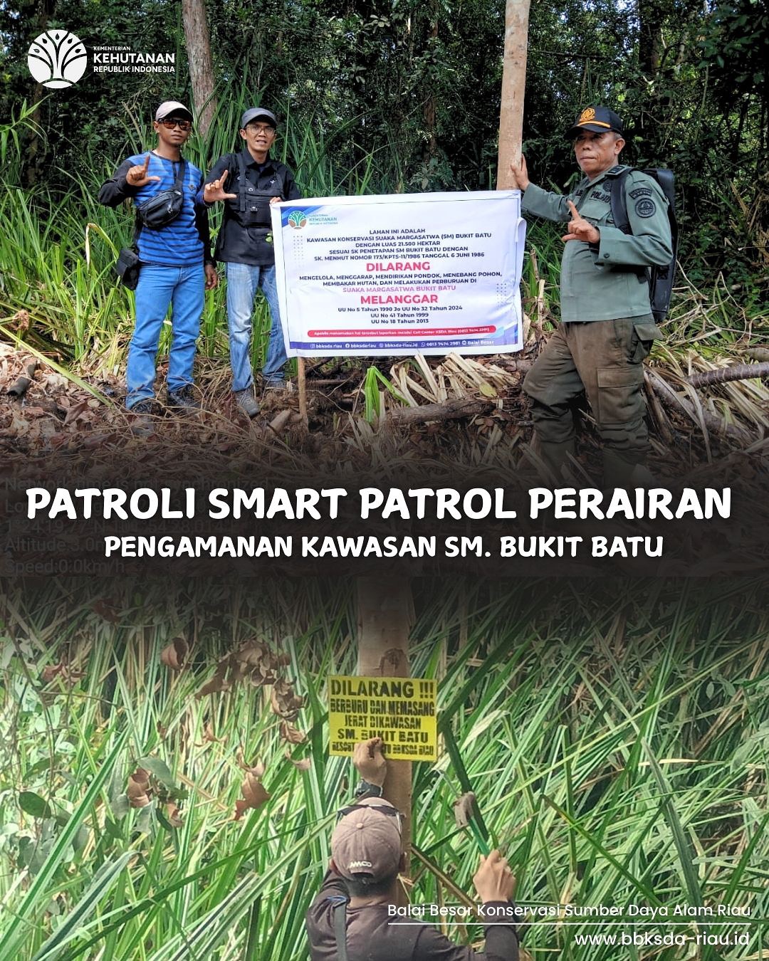 Patroli SMART PATROL perairan di Suaka Margasatwa Bukit Batu, Kabupaten Bengkalis, yang dilaksanakan pada tanggal 25–29 Agustus 2025, berhasil mengungkap berbagai aktivitas ilegal logging di dalam kawasan konservasi. Kegiatan diawali dengan persiapan sarana prasarana, pembagian regu, serta koordinasi dengan perusahaan sekitar. Selama patroli, tim menemukan tumpukan kayu olahan, jalan kargo, pondok pekerja lengkap dengan penerangan, serta peralatan yang digunakan untuk aktivitas penebangan liar. Tindakan tegas pun dilakukan di lapangan mulai dari pemusnahan pondok pekerja ilegal logging, pemusnahan perahu mesin dan chainsaw, pengamanan barang bukti berupa mesin perahu, chainsaw, dan genset ke kantor wilayah, pemasangan rambu kawasan berupa spanduk dan papan larangan memasuki kawasan tanpa izin Selain penindakan, tim juga melakukan pendataan dan evaluasi kegiatan, sekaligus menyampaikan apresiasi kepada pihak-pihak yang telah mendukung kelancaran patroli fungsional ini. Patroli ini menjadi bukti nyata komitmen bersama dalam menjaga SM Bukit Batu agar tetap terlindungi dari ancaman perusakan, serta memastikan kelestarian ekosistem hutan bagi generasi mendatang.