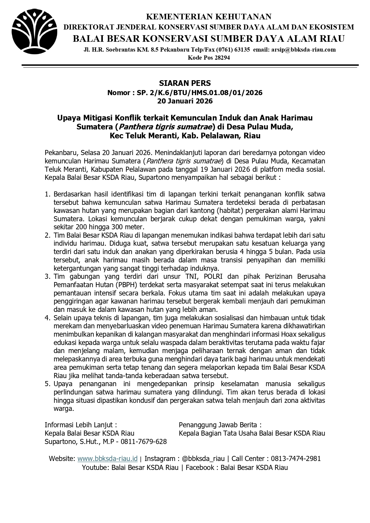 Penanggung jawab berita : Kepala Bagian Tata Usaha Balai Besar KSDA Riau
